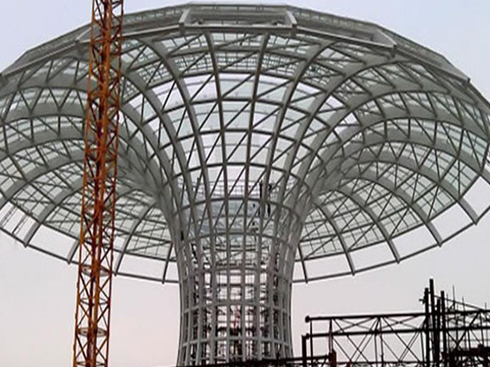 二、球形网架结构因其结构新颖,受力合理,自重轻、用钢量低等优点。如大型体育场馆球形果洛螺栓球网架、公共场馆球形网架、电厂果洛螺栓球网架、水泥工业球形网架、仓储物流球形网架、果洛干煤棚工业球形网架、果洛收费站果洛加油站球形网架、展览中心、影剧院、商场、航站楼、候车厅、工厂果洛车间、仓库、电视塔等球形螺栓球节点网架。国内球形网架结构主要分为:果洛焊接球节点网架及螺栓球节点网架两种。螺栓球节点网架其构件工厂内加工量较大,现场安装便捷,适用于现场工期紧,果洛施工条件、用电量受制约,网架形状复杂、果洛杆件定位困难的异形结构。螺栓球节点球形网架系统基本由果洛杆件、螺栓球、支撑支座等组成。按照节点形式可分为交叉果洛桁架体系、四角锥体系、三角锥体系等。支撑方式多为固定支座支撑。对于大面积、大跨度及有特殊受力或伸缩要求的网架结构可采用橡胶支座、滑移支座、球铰支座等支撑形式,以满足结构自身的受力稳定、均衡,便于内力释放等设计要求。